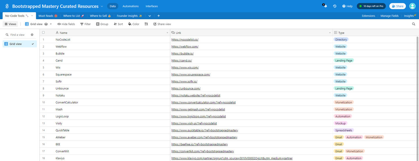 👑 Exclusive access to community of builders, founders, and money makers helping each other (COMING SOON)🎉 Top places to list and market your business🤑 Guides to getting your first paying users💵 Tools to get paid with No-Code📚 Must read articles for anyone planning to make money from SaaS💡 Exclusive insights from founders building profitable products